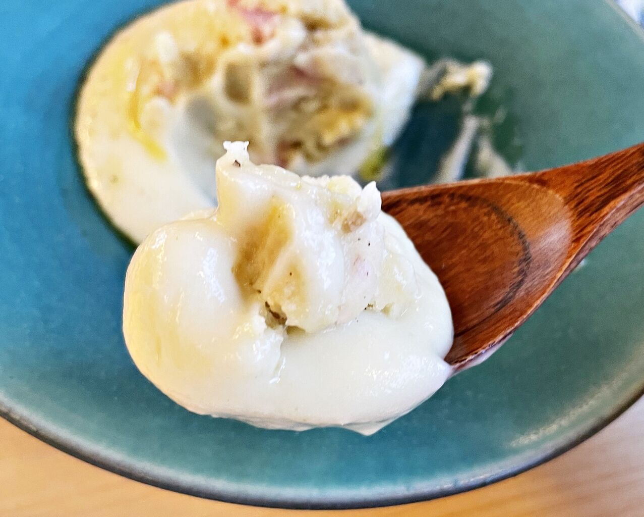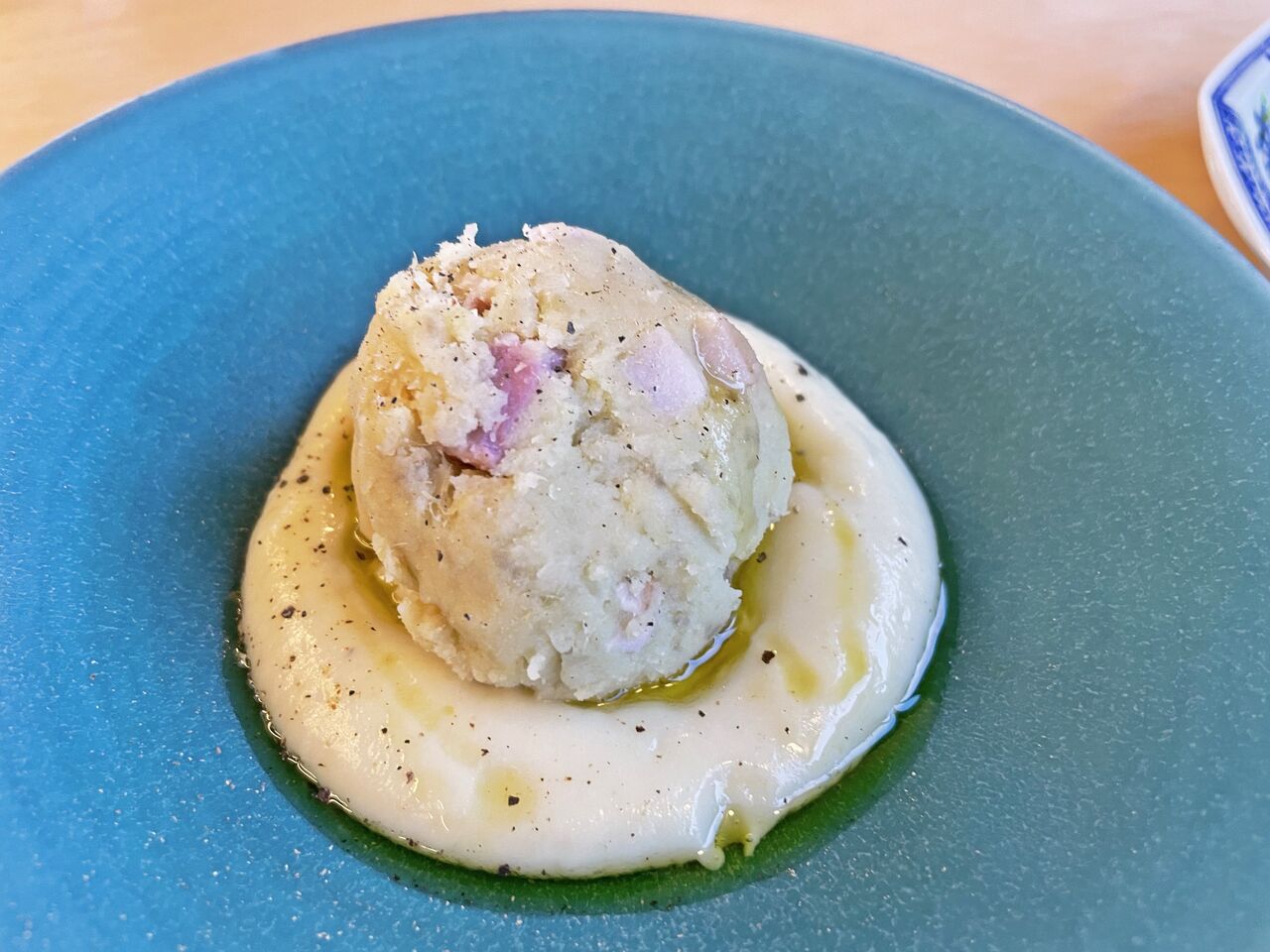 さつまいものペーストの上にさつまいも、中にはパンチェッタが入ってます♪