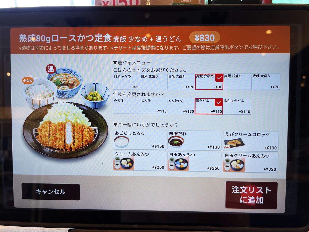 みそ汁を小うどんに変更、ごはん少なめ-30円にしました(^^)