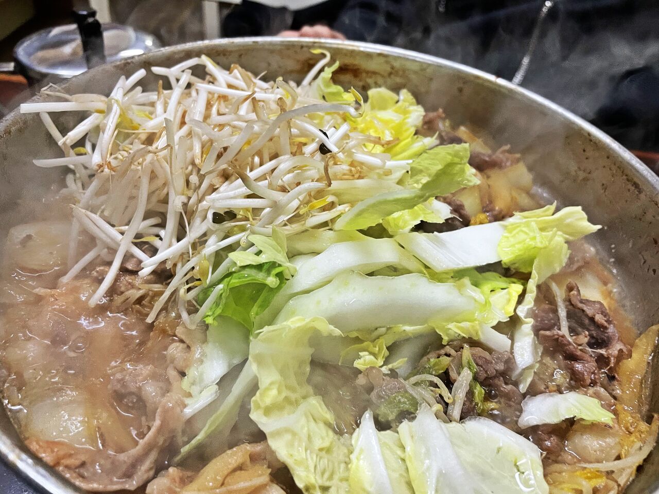 タレが掛けてあるのでしばらくすると野菜の水分とタレで鍋が完成です♪