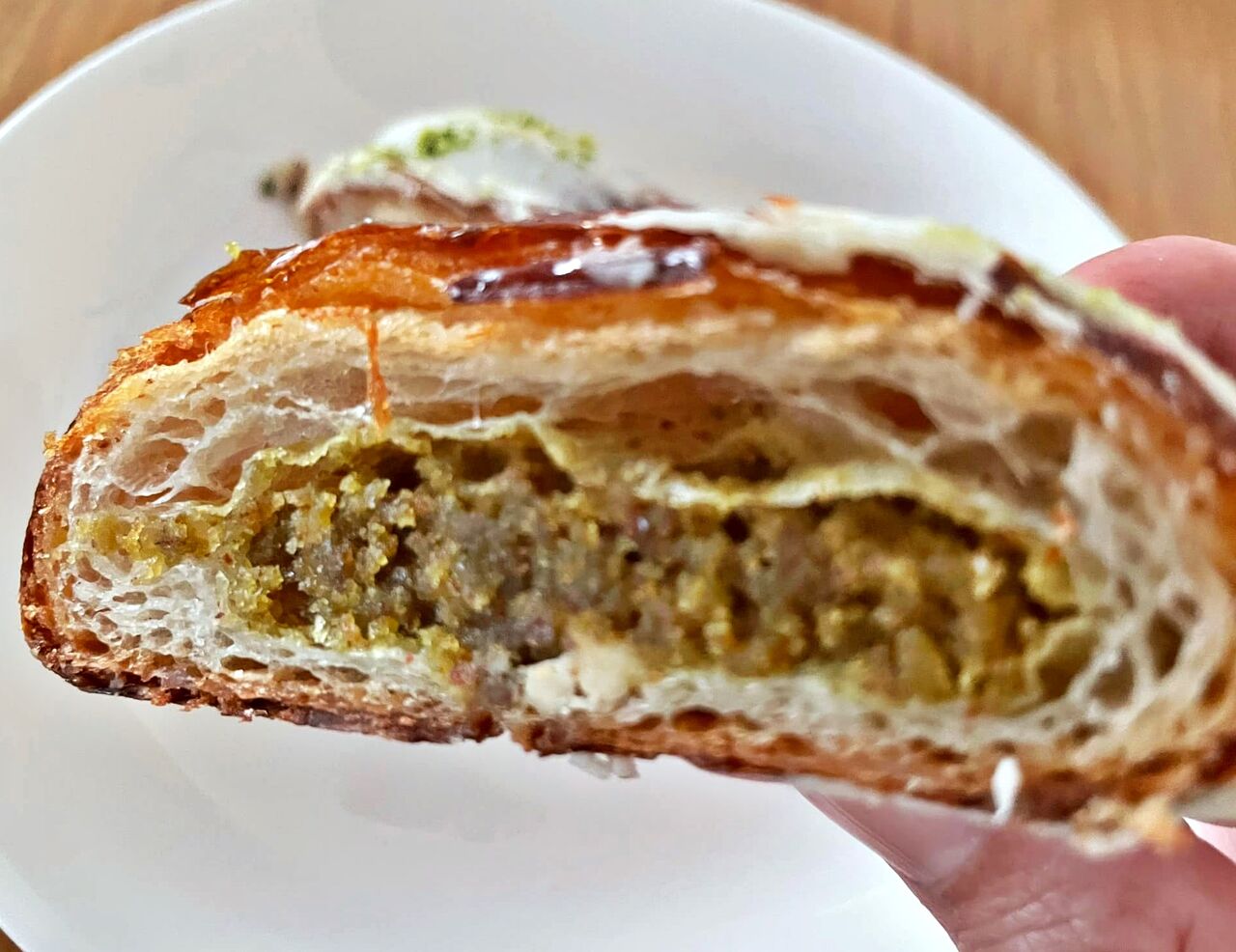 クロワッサン生地の中にピスタチオダマンドとホワイトチョコがたっぷり♪