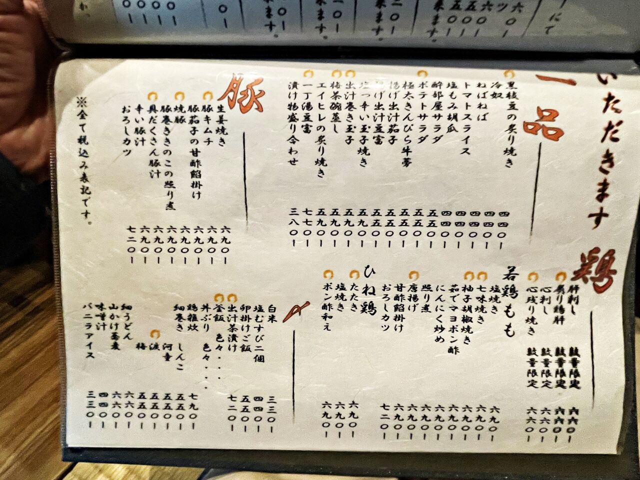 値段の載ってないメニューからばかりの注文になりましたが