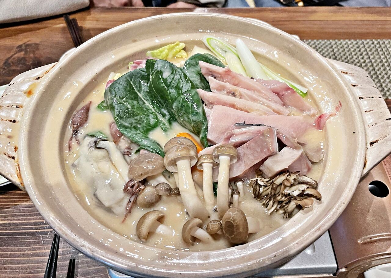 鰤やキノコもたっぷり入っていて酒粕好きにはたまらないお鍋です(^^♪