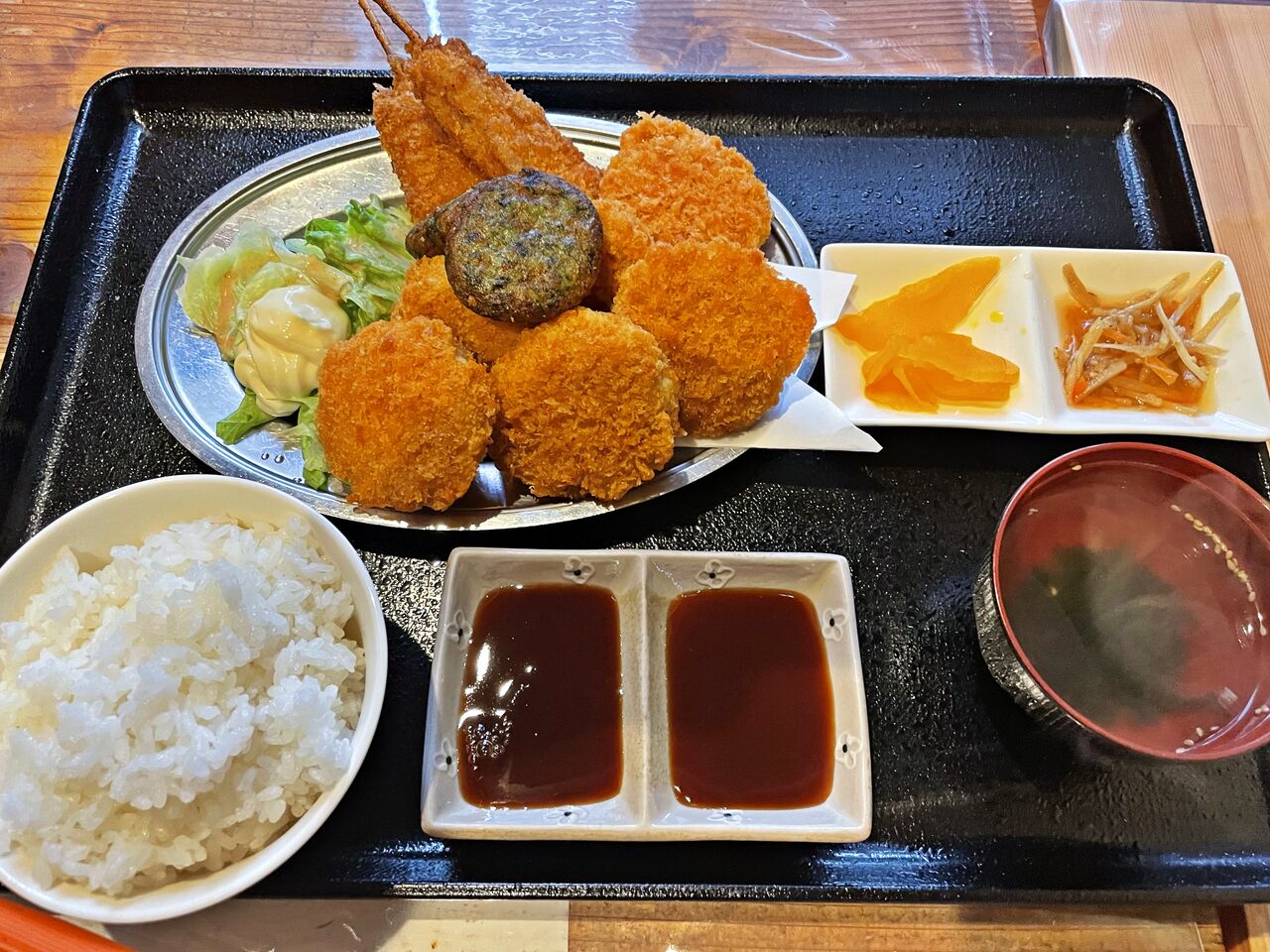 ミンチカツだけでなく串カツ2本も付いてボリューム満点(^^)