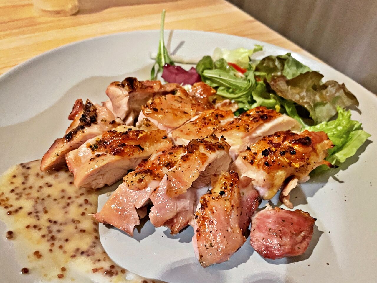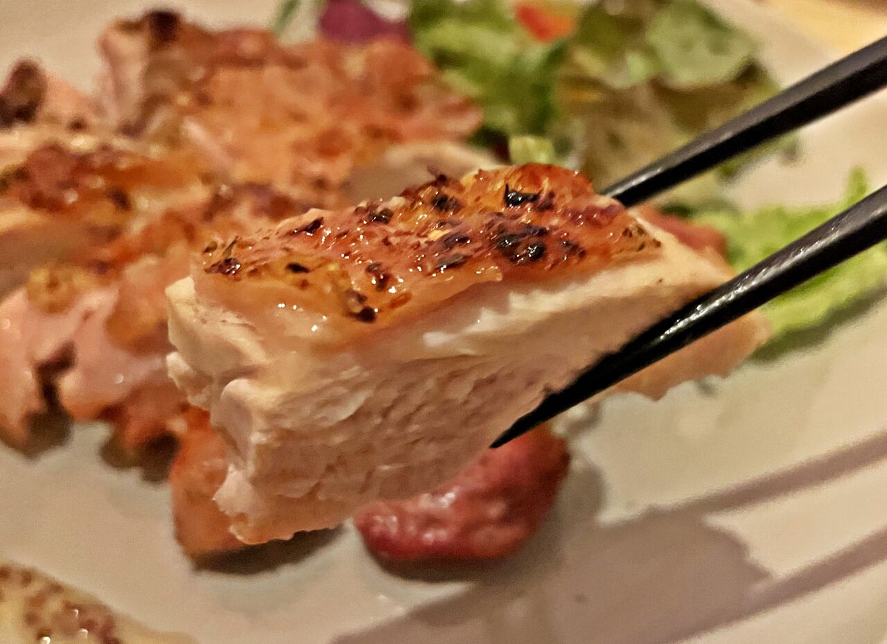 皮がパリっと焼かれててハニーマスタードソースとよく合います(^^♪