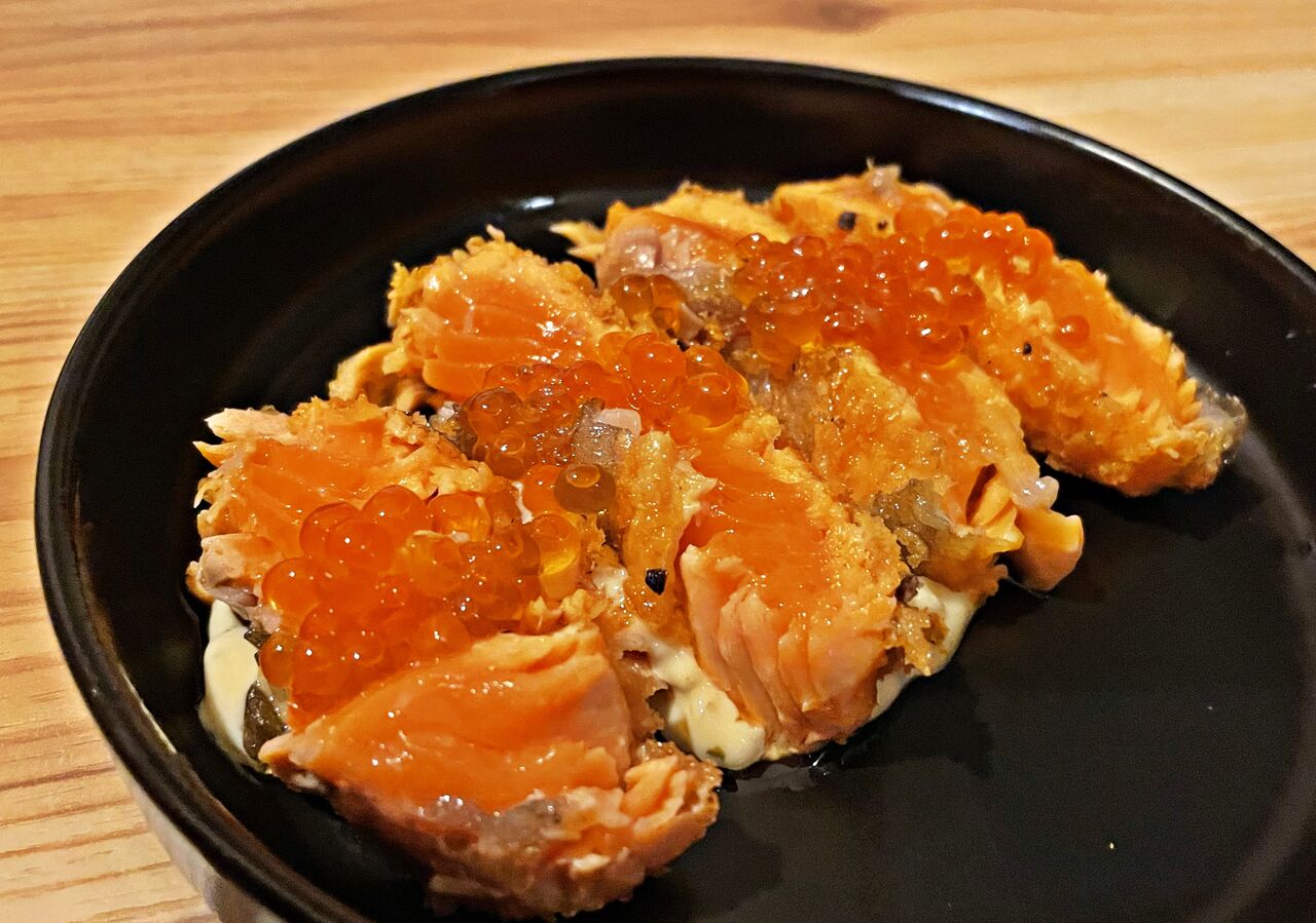 レアサーモンカツ いくらとタルタルソース(748円)♪