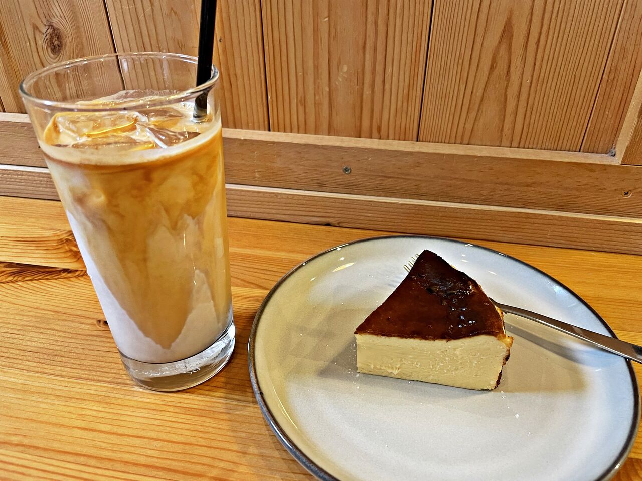 アイスキャラメルラテ(630円)♪ バスクチーズケーキ(580円)♪