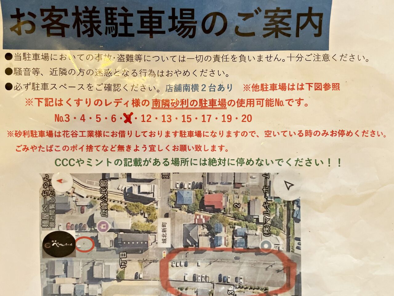 少し南に砂利の駐車場が10台あります。