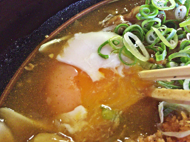 タマゴの黄身を割るとカレーがまろやかになります(^^♪
