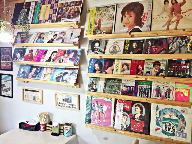 壁には昭和のレコードが並びレトロ感が漂います(^^)