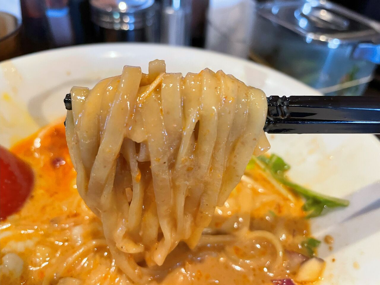 もっちり平打ち麺と棒棒鶏の限定麺です(^^)