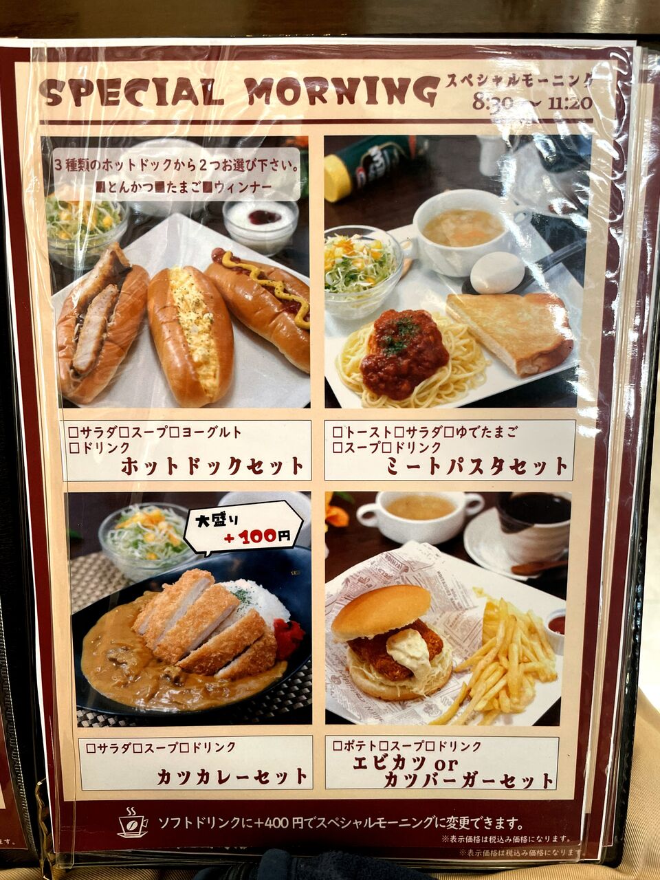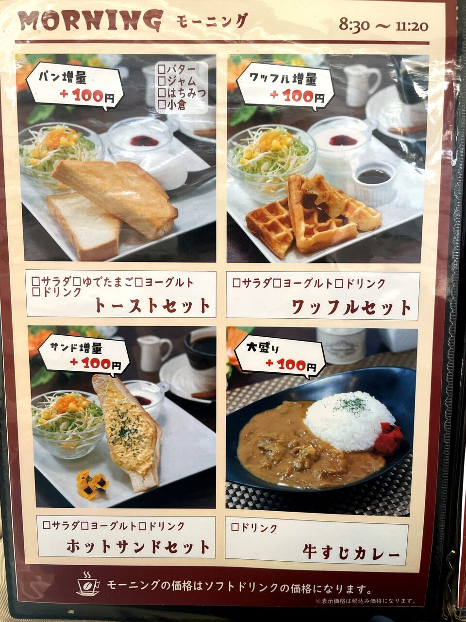 ドリンク代のみのモーニングから牛すじカレーを選びました♪