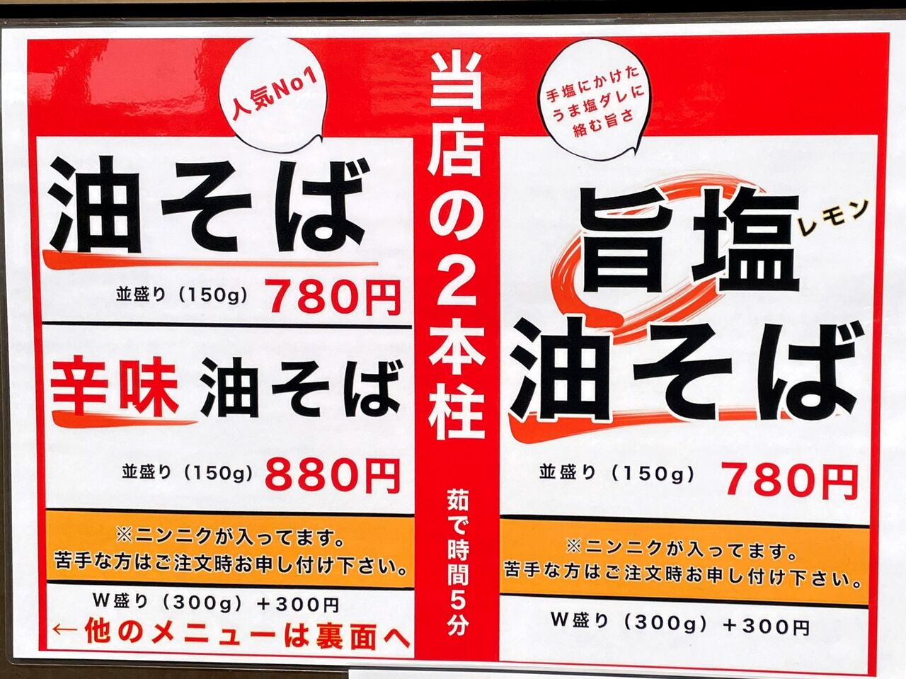 油そばも数種ありましたが、普通の油そばにしました♪