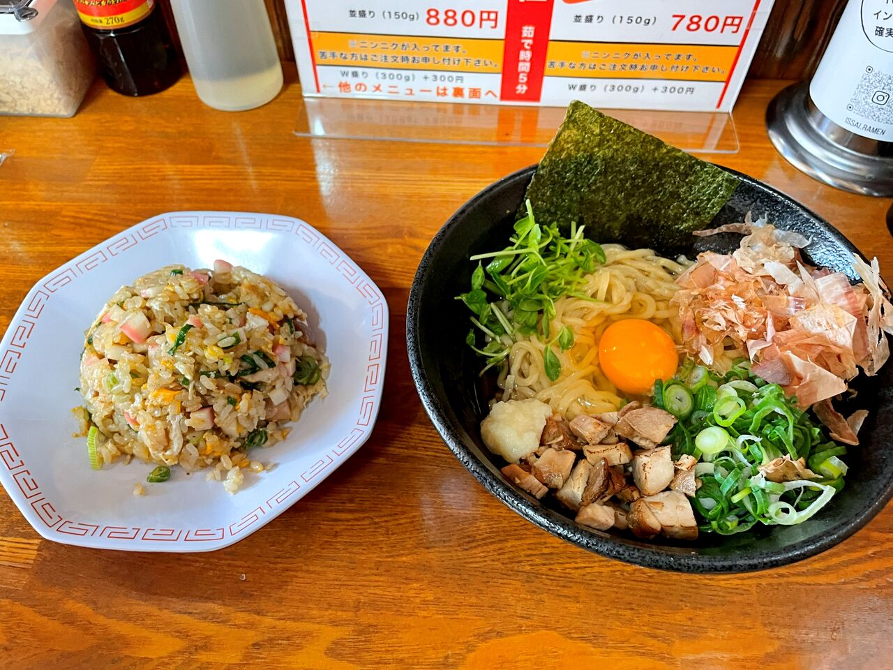 油そばと半チャーハンのセットにしました(^^)
