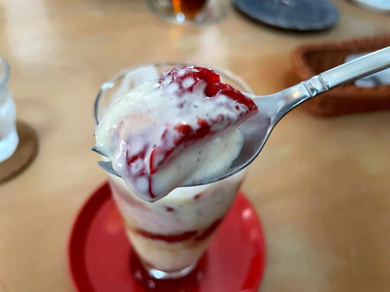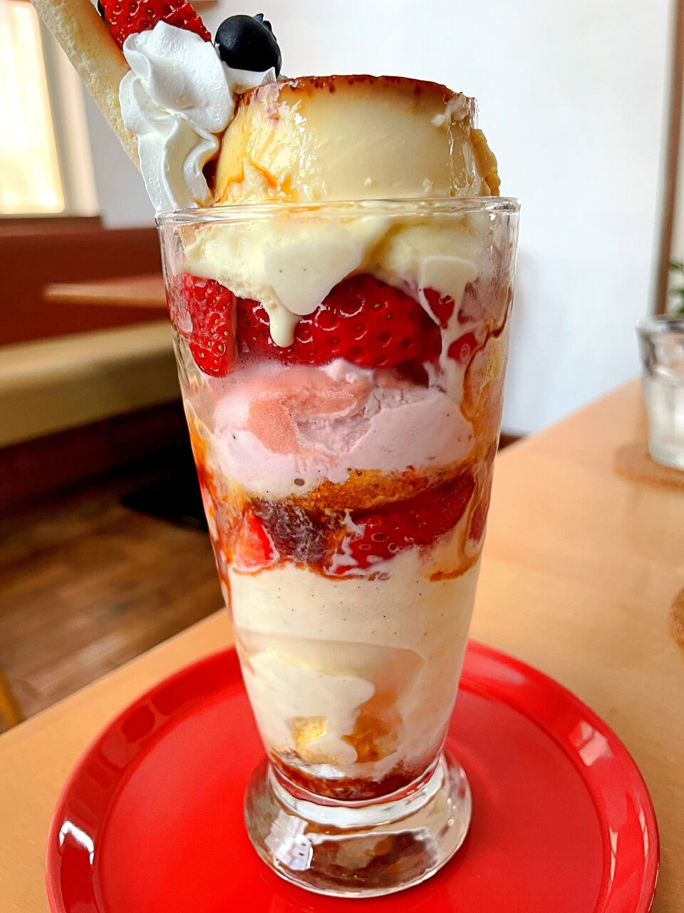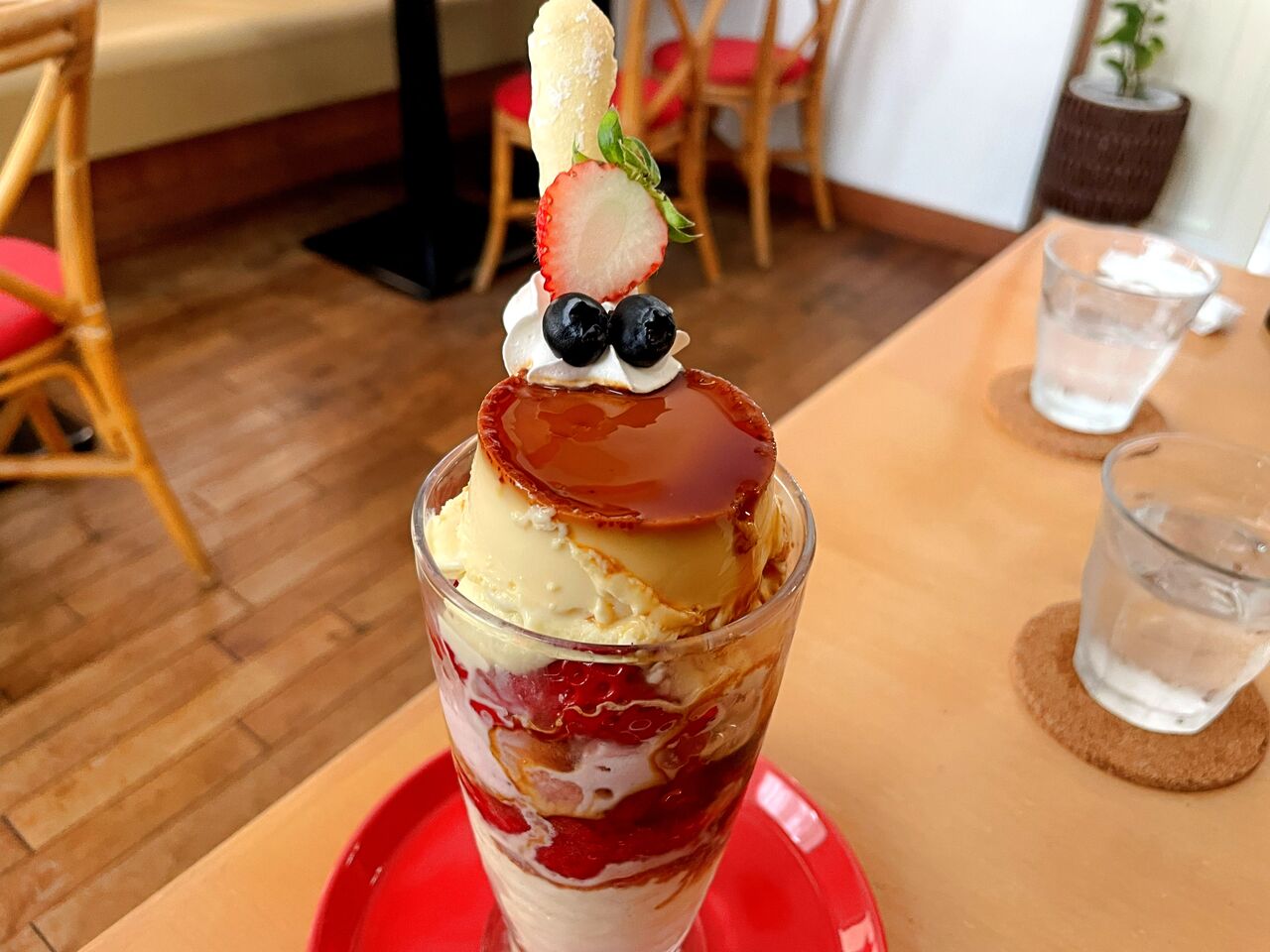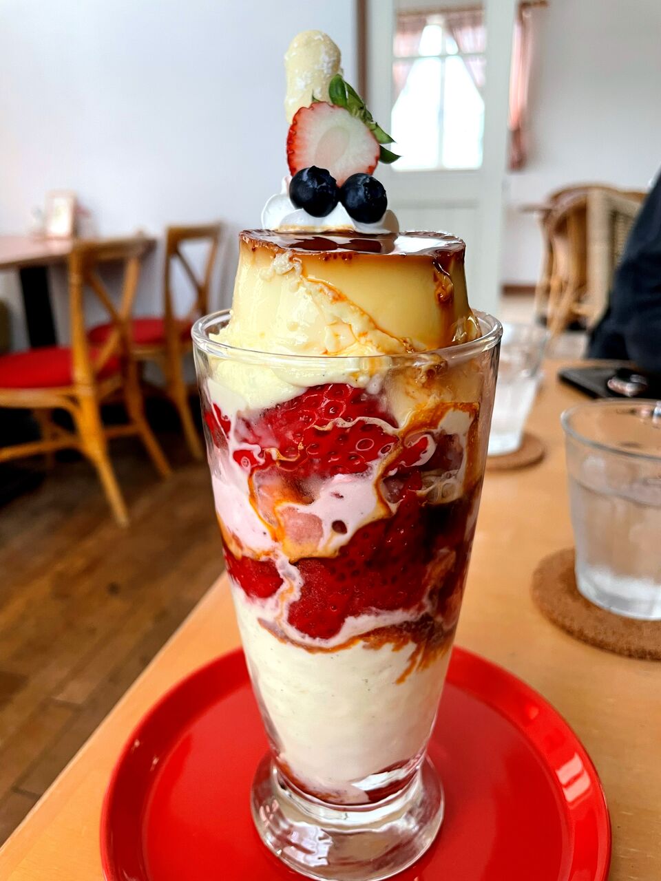 美味しいプリンと苺のパフェにお腹いっぱい大満足でした♪