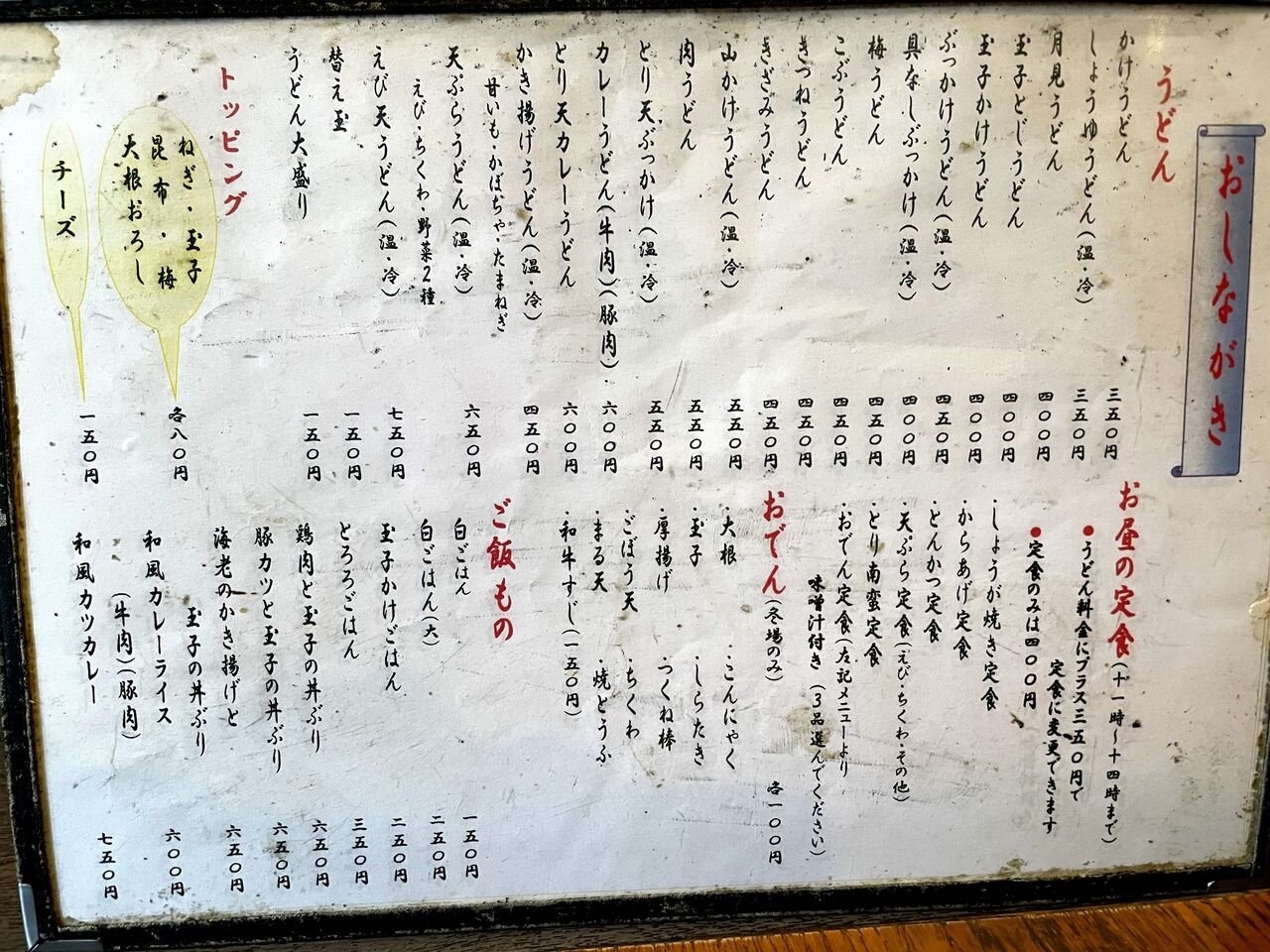 お昼の定食はうどん料金にプラス350円で定食にできます!