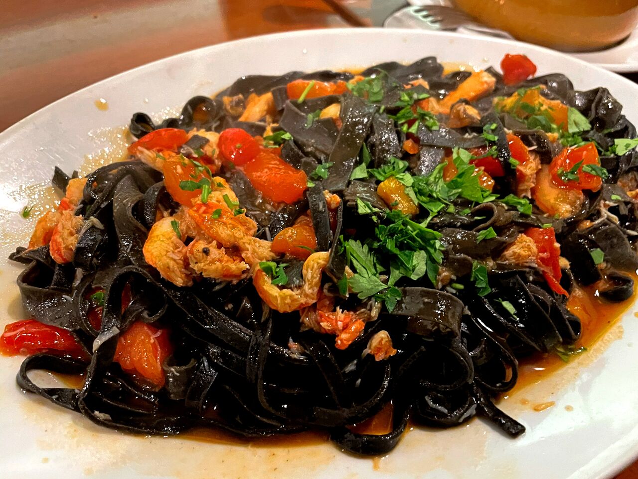 イカ墨のパスタ ズワイガニとアメリケーヌ♪