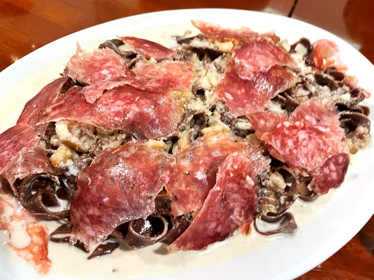 カカオを練りこんだパスタ 山栗とゴルゴンゾーラソース♪
