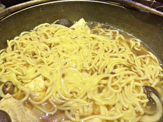ホタテ貝を食べ終わると締めにそばの投入です♪