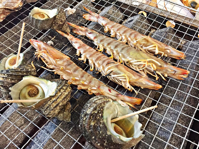 車海老とサザエも焼きます♪