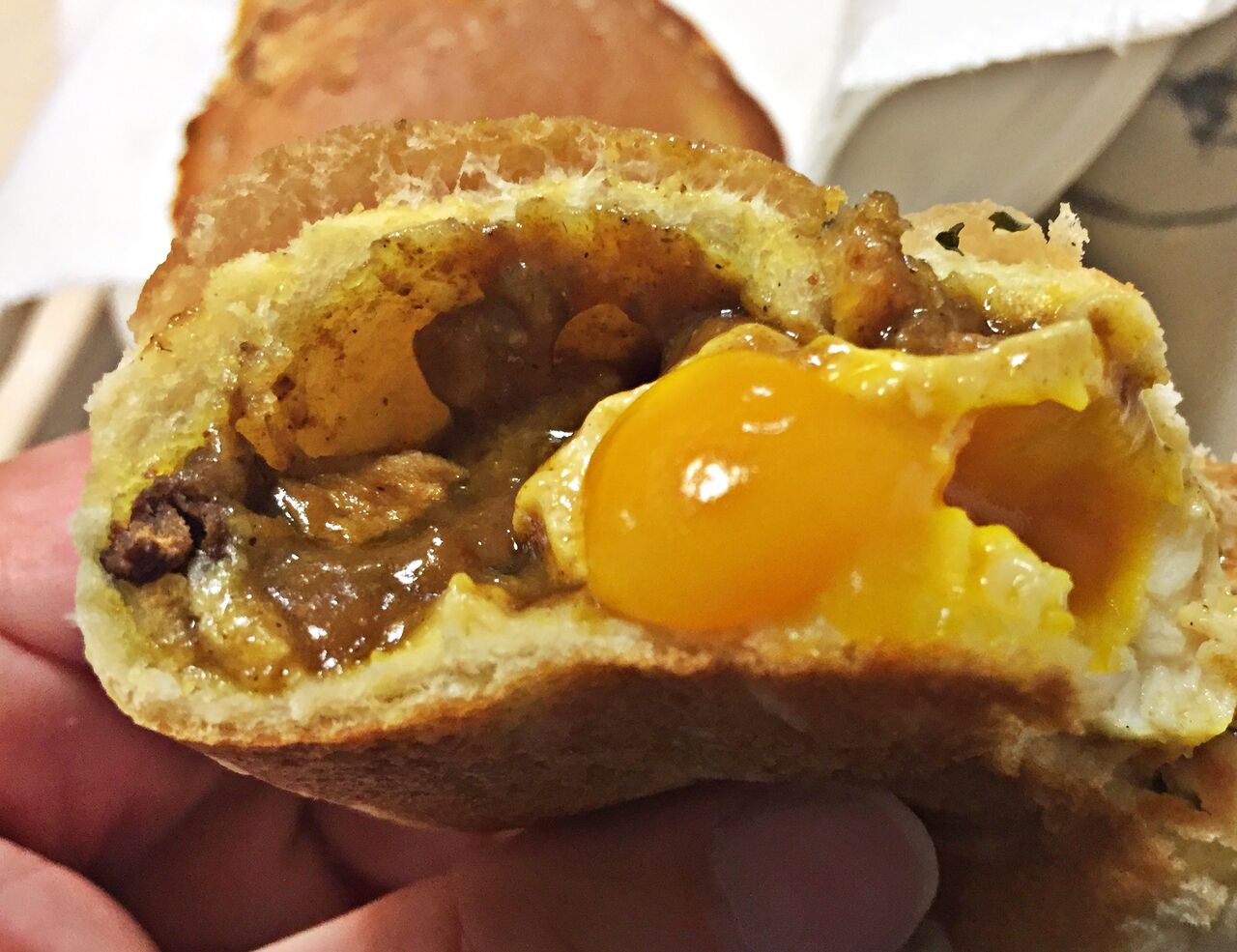 とっても美味しい半熟卵の入ったカレーパンでした(^.^)