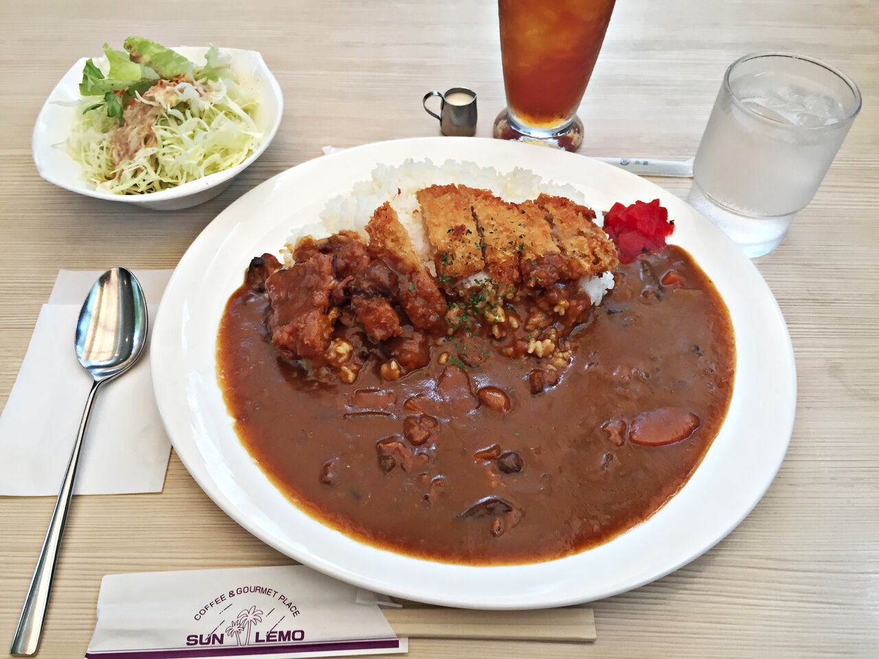 カツカレーにサラダ、ドリンクが付いてます♪
