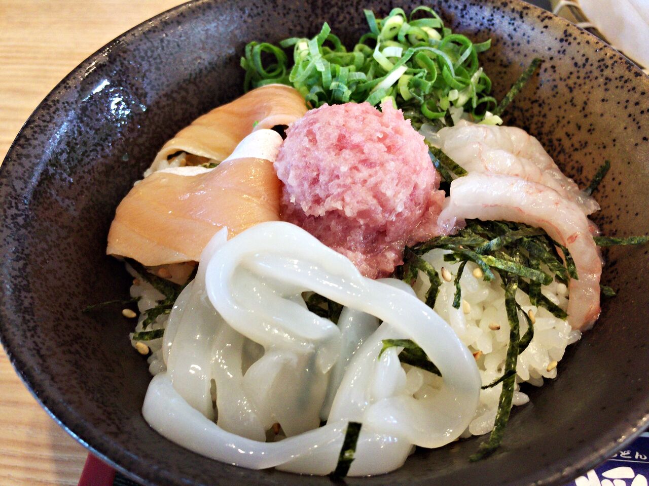 海鮮丼とミニうどん 天ぷら付き♪
