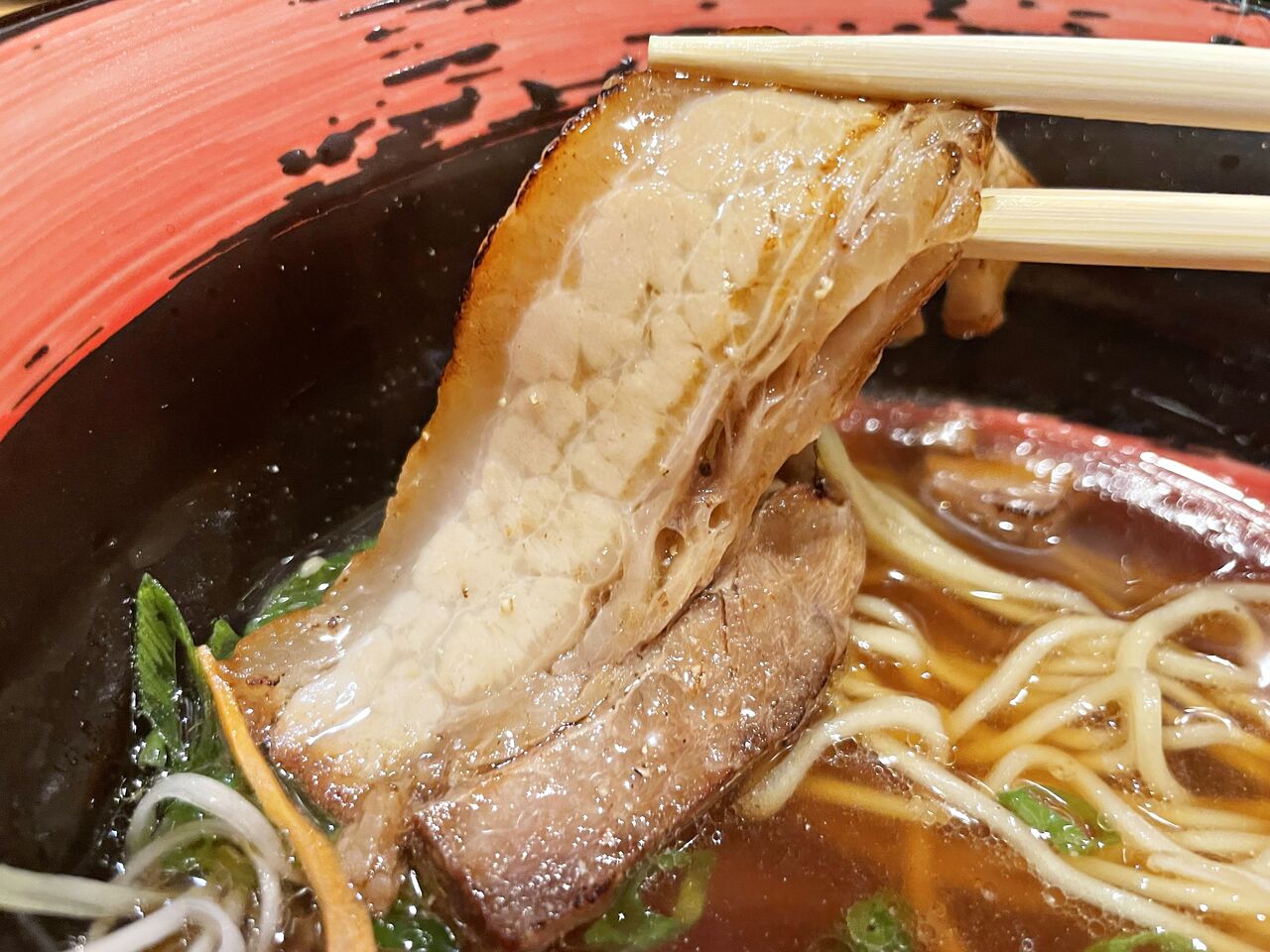 大きなチャーシューは炙られていて香ばしく食べ応えもあります♪