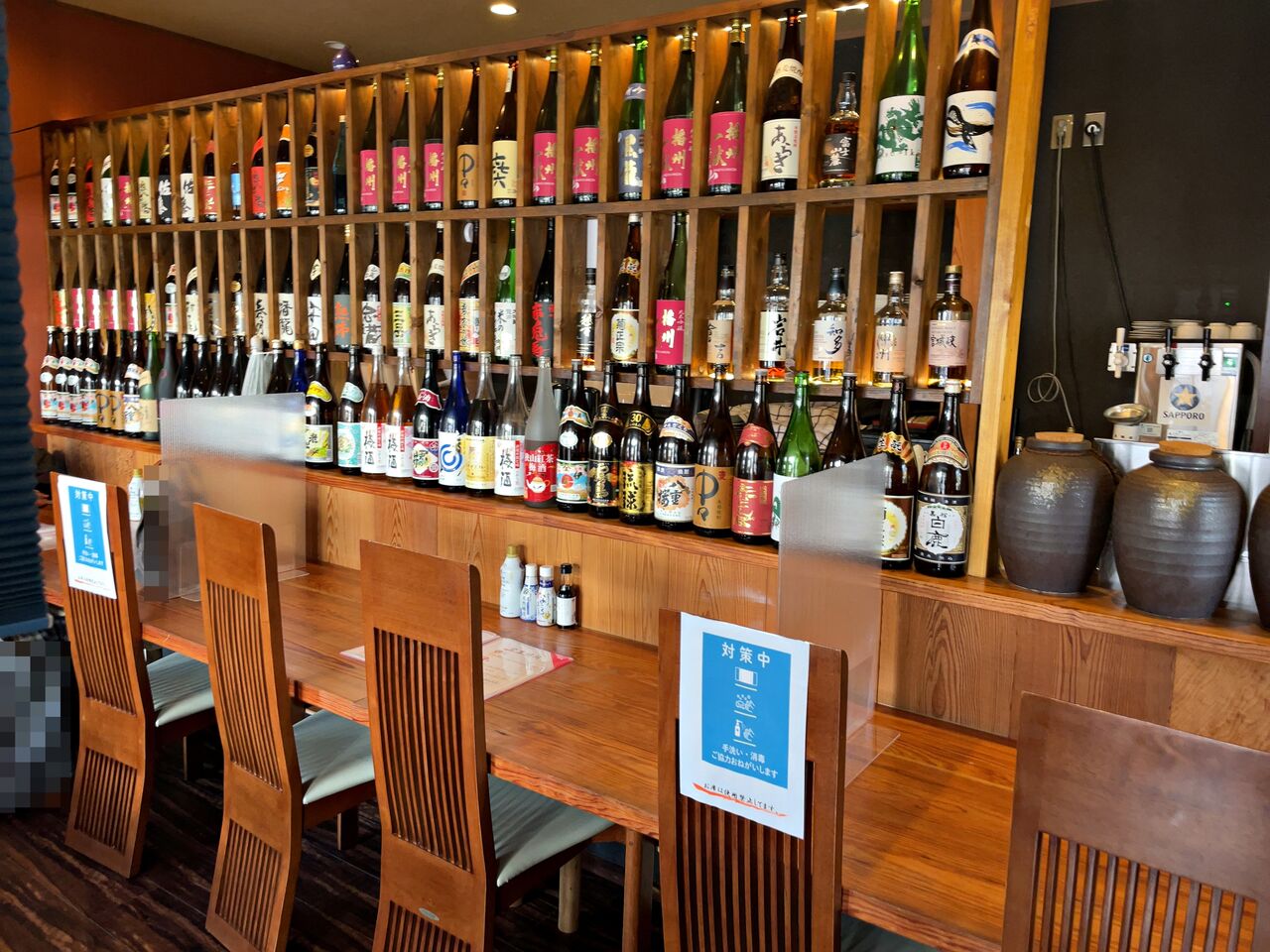 カウンター席、テーブル席があり、カウンターの前にいっぱいお酒が並んでます♪