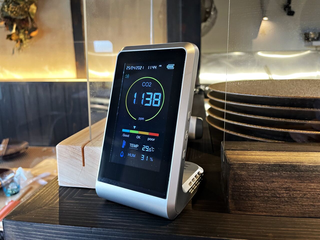 消毒液やアクリル板、CO2センサーなども設置されていて感染防止対策もしっかりされてます。