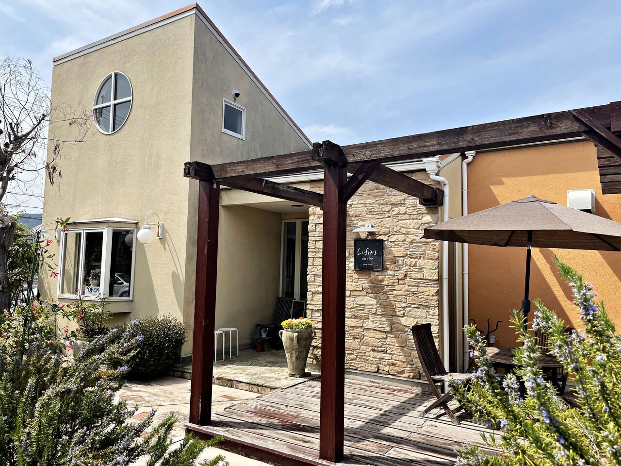 閑静な住宅街の中にあるオシャレな外観のカフェです♪