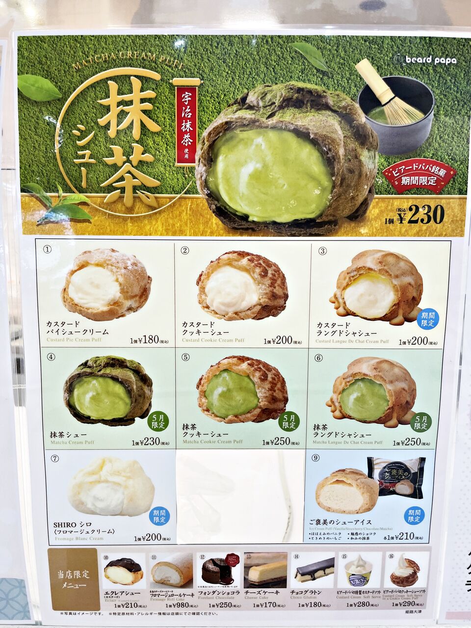 5月限定の抹茶のシュークリームです(^^)